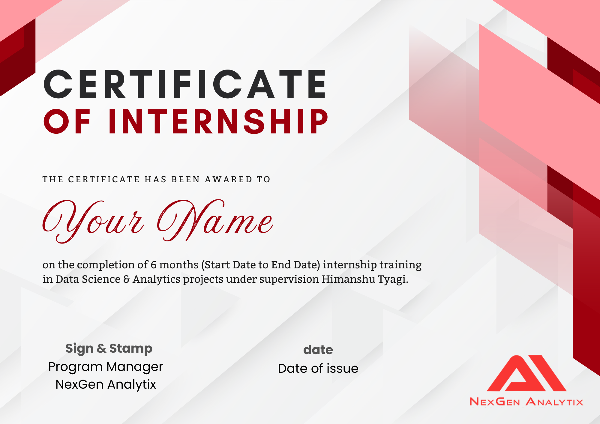 Gain an official internship certificate showcasing your practical experience and real-time project exposure.